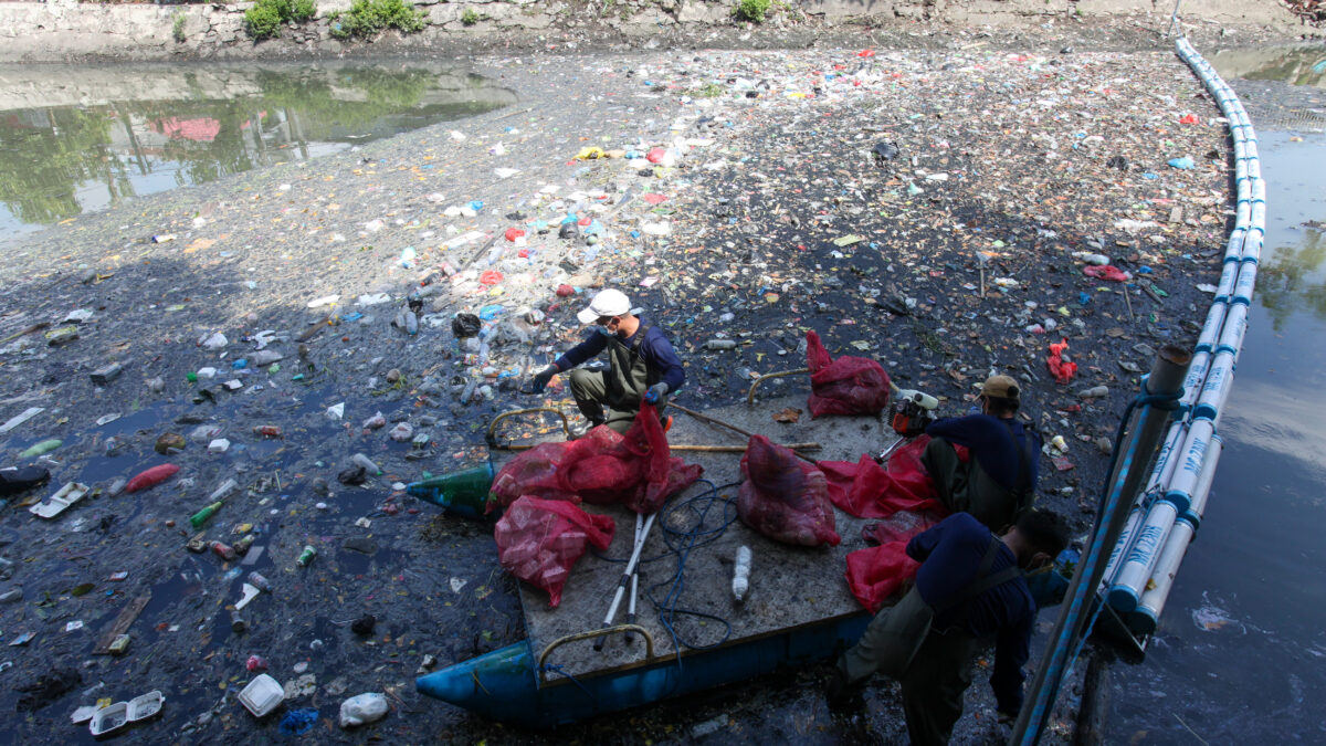 Uji coba MOZAIK di Kali Tebu Surabaya memadukan teknologi penahan sampah, pemilahan berlapis, serta audit merek untuk menekan…