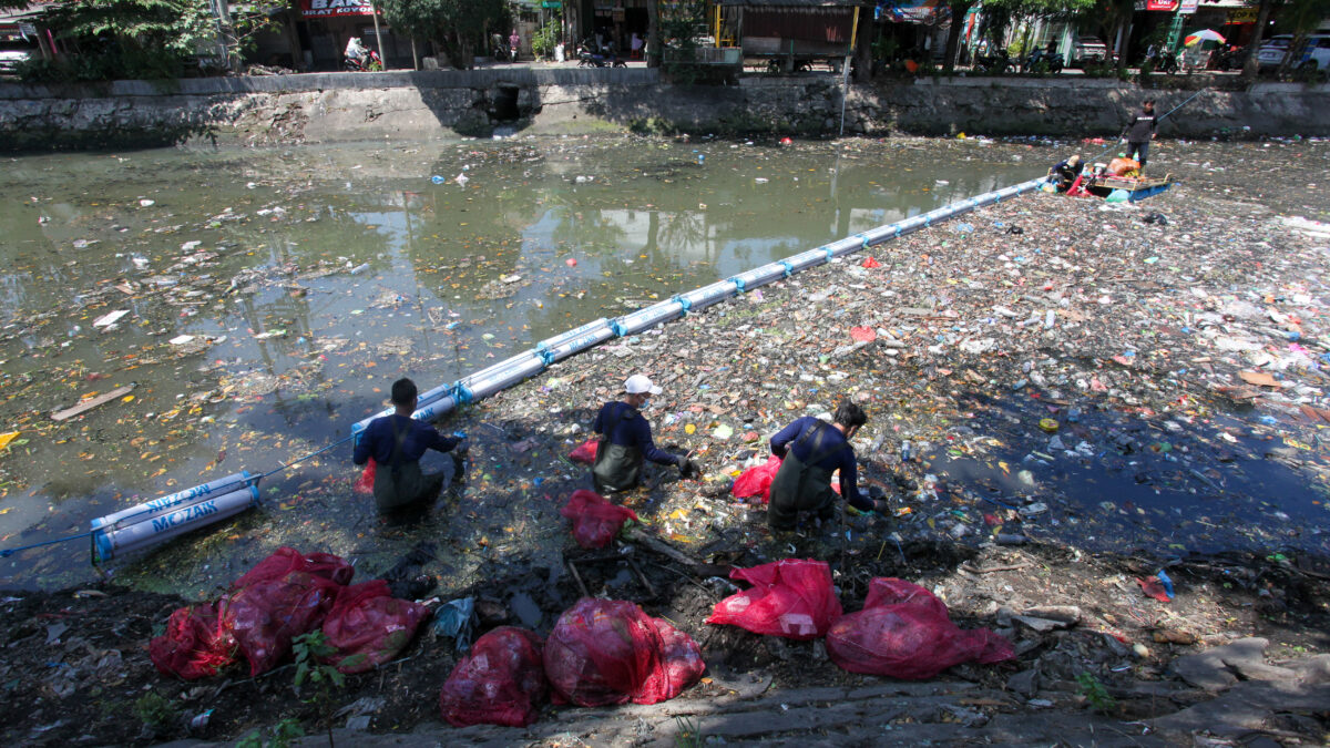 MOZAIK Bendung Kebocoran Sampah Plastik Kali Tebu Surabaya