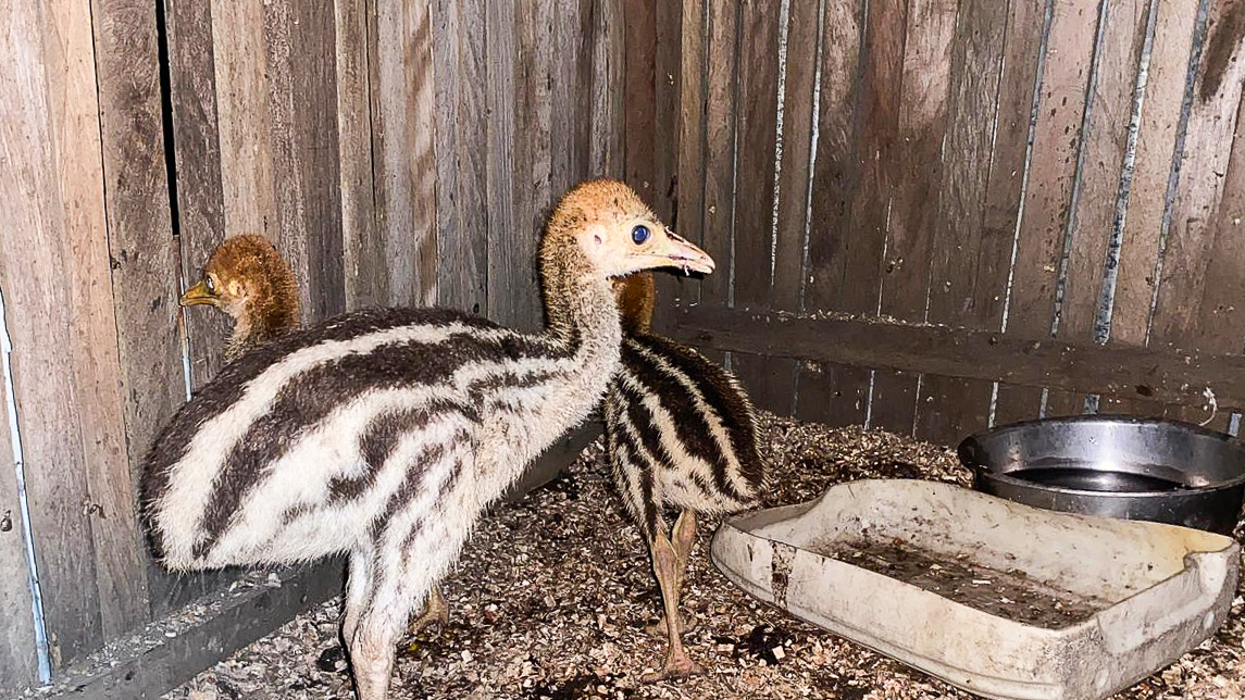 Anakan Kasuari ((Casuarius sp.) terlihat berada dalam kandang sederhana saat diamankan petugas. Satwa endemik Papua ini termasuk dilindungi dan kerap menjadi target perdagangan ilegal.| | Dok. Balai Gakkumhut