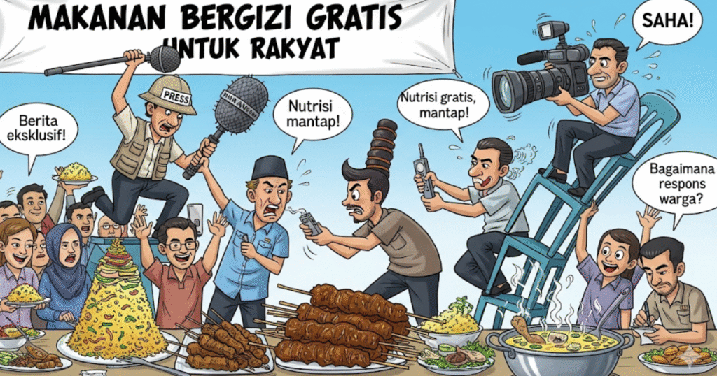 JAKARTA – Di Indonesia, ada dua hal yang katanya wajib hukumnya demi masa depan bangsa: anak-anak harus kenyang, dan jurnalis harus bebas meliput. Yang satu biar otak tumbuh, yang satu biar kebenaran nggak layu sebelum berkembang. Nah, ironisnya, dua hal itu justru ketemu dalam satu drama: dapur makan bergizi (MBG) dan penganiayaan wartawan.