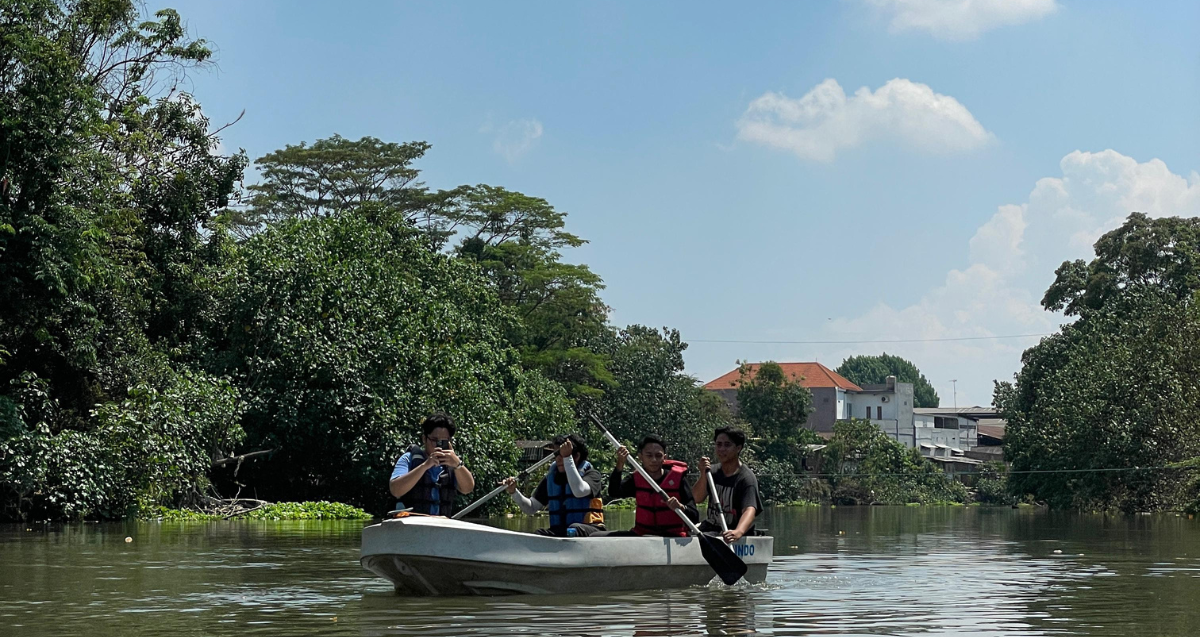 Setelah itu, dua perahu karet dan empat kanu kembali meluncur menyusuri Kali Surabaya. Para aktivis Ecoton melakukan inventarisasi sumber pencemaran dan sosialisasi hak-hak sungai kepada warga bantaran.