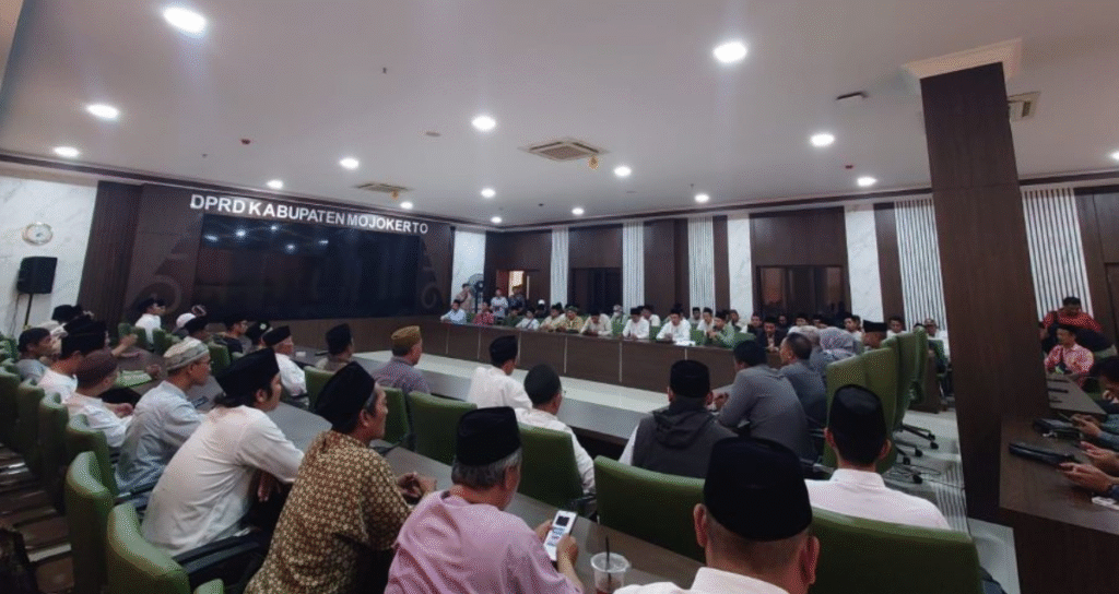 JUMAT (17/10/2025) siang itu, udara di sekitar kantor DPRD Kabupaten Mojokerto terasa lebih panas dari biasanya. Bukan karena cuaca, tapi karena ratusan alumni dan santri dari Himpunan Alumni Santri Lirboyo (Himasal) Cabang Mojokerto bersama para alumni pesantren se-Mojokerto sedang “menggeruduk” gedung dewan.