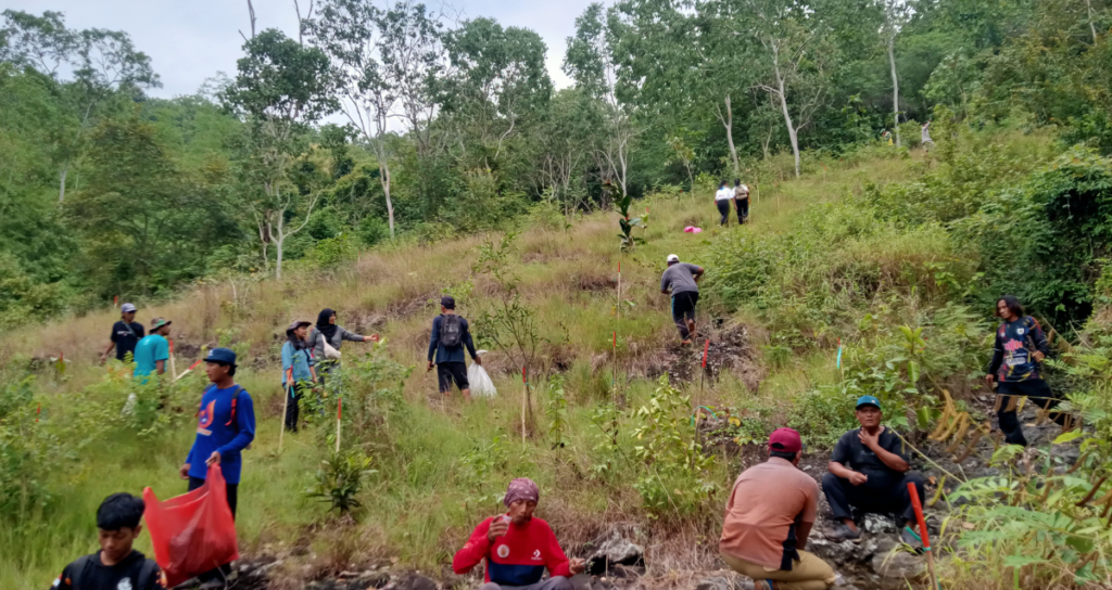 Luas area yang ditanami tidak sampai satu hektare. Tantangannya bukan hanya luasan, tetapi juga kondisi tanah. “Tanahnya tipis dan cukup sulit. Tanaman sebelumnya hanya tumbuhan liar kecil,” kata Komar. Di kawasan ini, reboisasi bukan sekadar menancapkan bibit, melainkan bertaruh dengan alam.