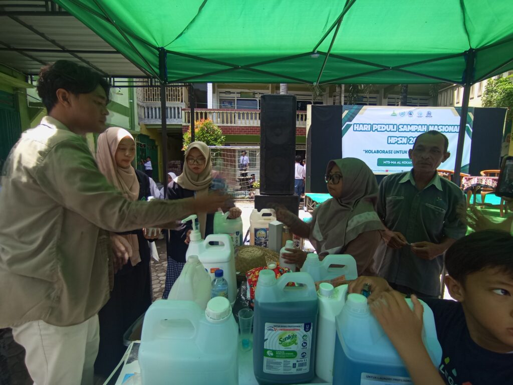 Kolaborasi Refilin dan MTs-MA Al Hikam Diwek Jombang memperingati HPSN 2026 melalui program tukar sampah menjadi sabun isi ulang, mencegah ribuan kemasan sachet mencemari lingkungan sekitar.