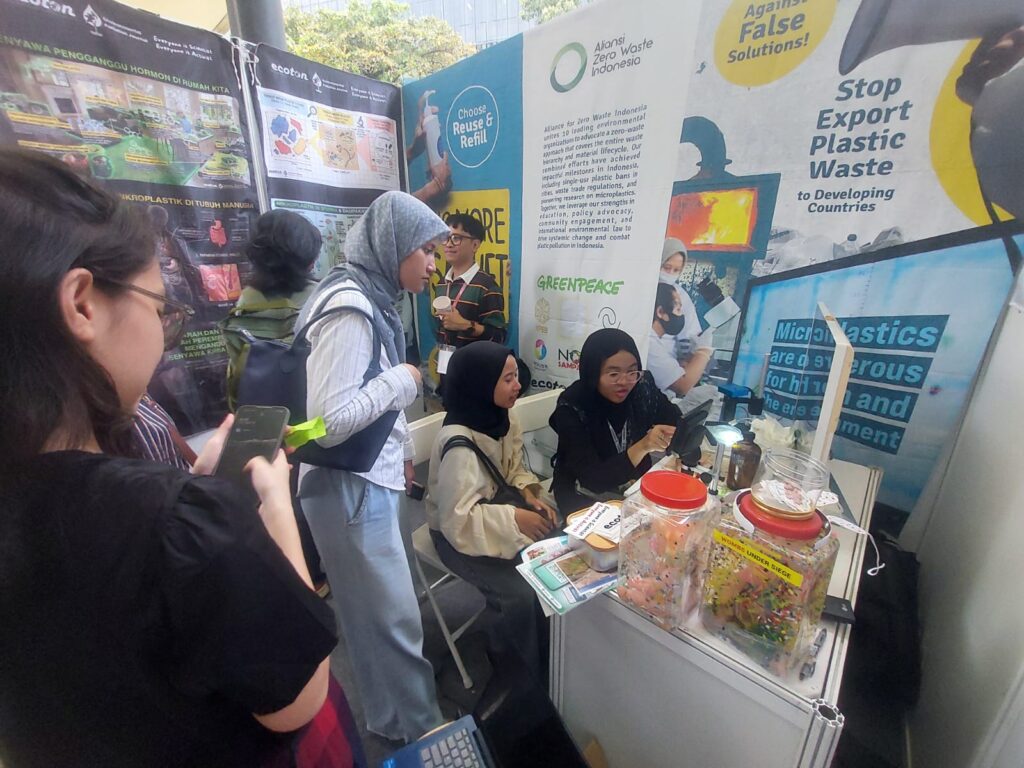 Booth ini juga menampilkan berbagai materi edukasi dalam bentuk poster. Informasi yang dipamerkan mencakup pendekatan gaya hidup zerowaste, dampak lingkungan plastik, serta hasil riset dari sejumlah lembaga, Nexus3, Greenpeace, Ecoton, dan PPLH Bali.