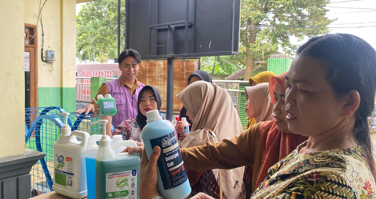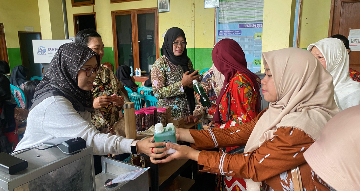 Refilin Roadshow di Desa Wonosalam menggandeng PKK untuk mempromosikan belanja isi ulang sebagai langkah konkret mengurangi sampah plastik sachet dari rumah tangga.