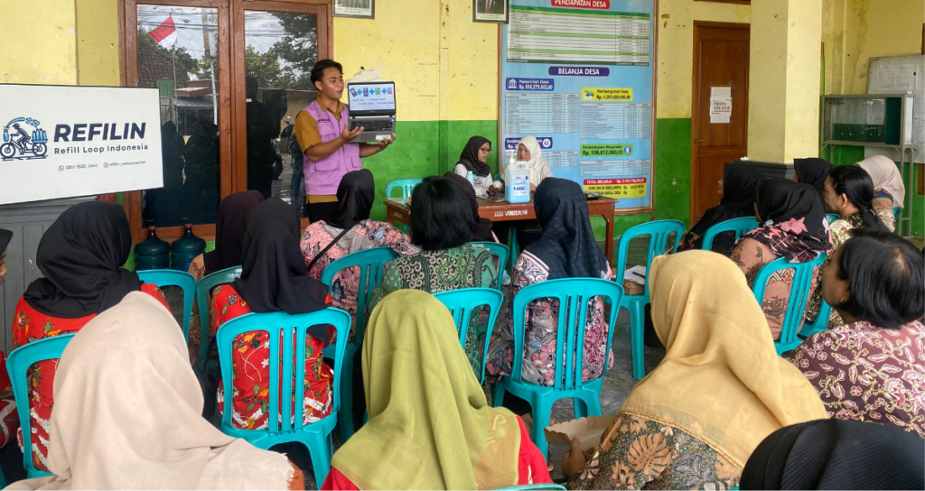 Refilin Roadshow di Desa Wonosalam menggandeng PKK untuk mempromosikan belanja isi ulang sebagai langkah konkret mengurangi sampah plastik sachet dari rumah tangga.