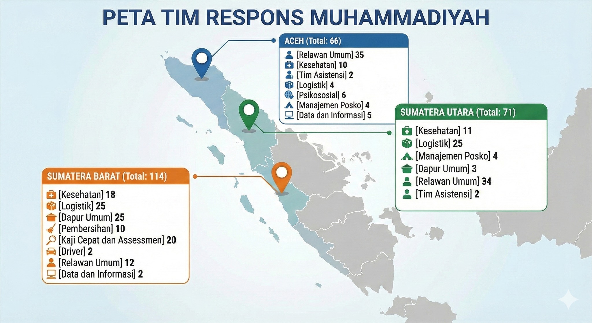 Muhammadiyah melalui MDMC memperluas respons tanggap darurat atas banjir bandang dan longsor di Aceh, Sumatera Utara, dan Sumatera Barat. Ribuan penyintas telah menerima layanan kemanusiaan, dengan relawan lintas wilayah dikerahkan untuk memperkuat operasi bantuan di tiga provinsi terdampak.