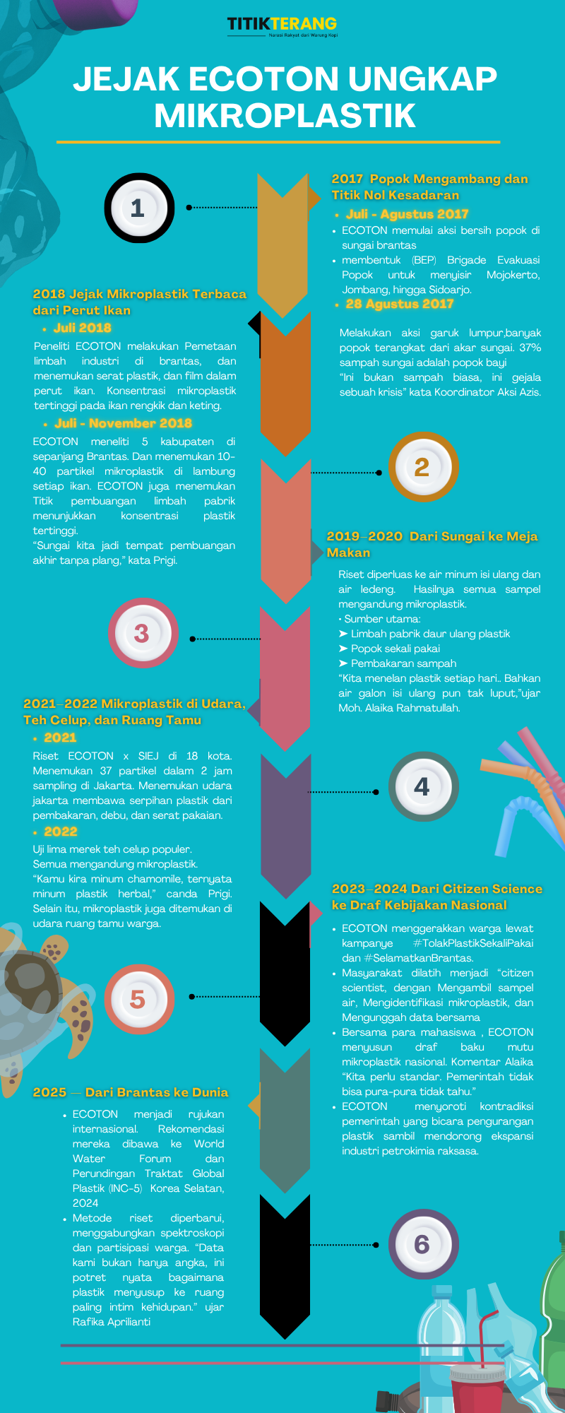 Kini, tujuh tahun setelah riset pertama di Brantas, ECOTON sudah menjadi rujukan nasional soal mikroplastik. Laporan mereka dibawa ke World Water Forum, menjadi masukan dalam Perundingan Traktat Global Plastik (INC-5) di Korea Selatan, November–Desember 2024.