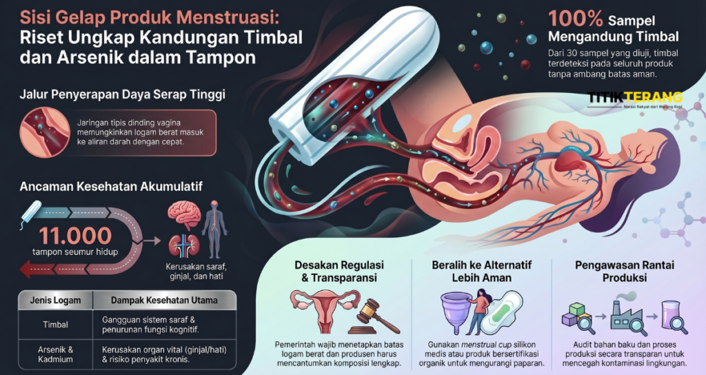 Riset global dan temuan Ecoton mengungkap logam berat dalam tampon. Paparan berulang mengancam kesehatan perempuan, menuntut transparansi industri dan regulasi ketat segera diterapkan.