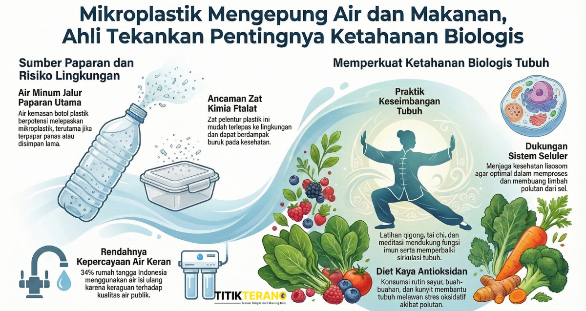 Mikroplastik telah ditemukan dalam air minum dan makanan. Selain mengurangi plastik sekali pakai, para ahli menekankan pentingnya memperkuat ketahanan biologis tubuh. Paparan mikroplastik kini menjadi persoalan lingkungan yang semakin serius. Partikel plastik berukuran sangat kecil itu telah ditemukan di berbagai media lingkungan, mulai dari air minum, air hujan, air tanah, hingga makanan laut. Kondisi ini pun membuat mikroplastik menjadi bagian dari paparan lingkungan global yang sulit dihindari sepenuhnya. Dalam berbagai penelitian lingkungan, mikroplastik bahkan telah terdeteksi pada rantai makanan manusia. Artinya, paparan tidak hanya terjadi melalui konsumsi air, tetapi juga dari makanan sehari-hari. Kepala Laboratorium Ecological Observation and Wetlands Conservation…