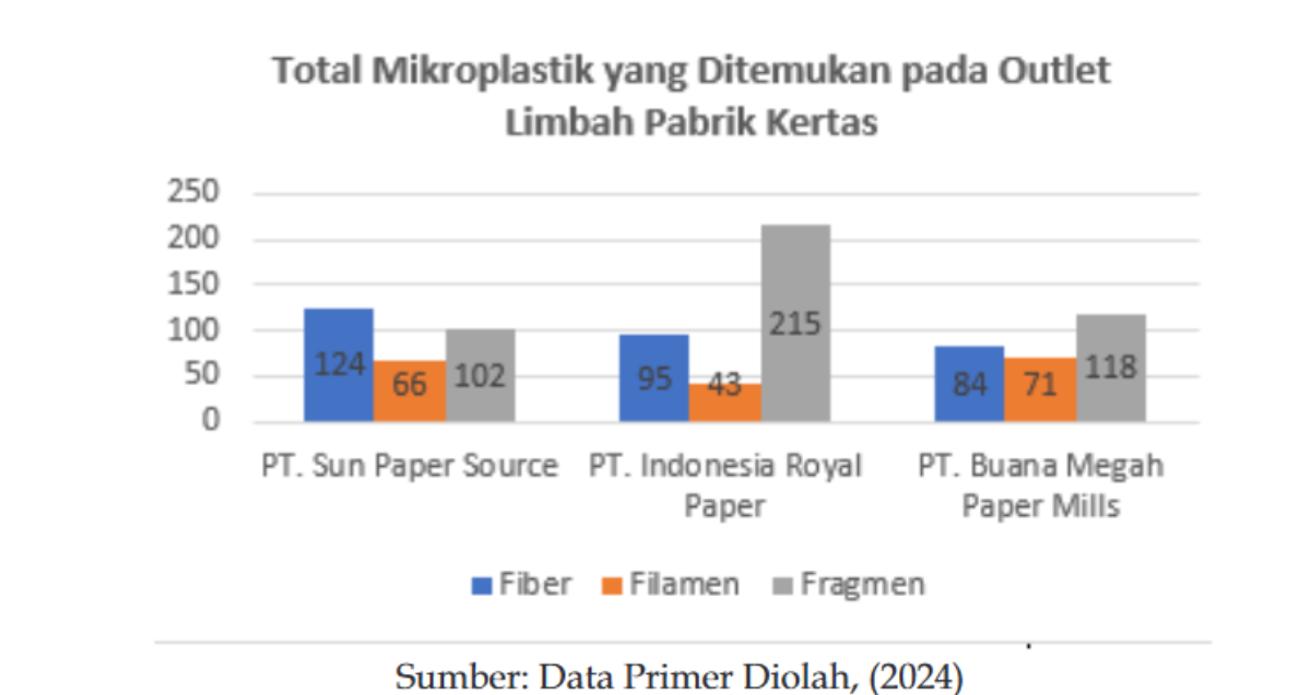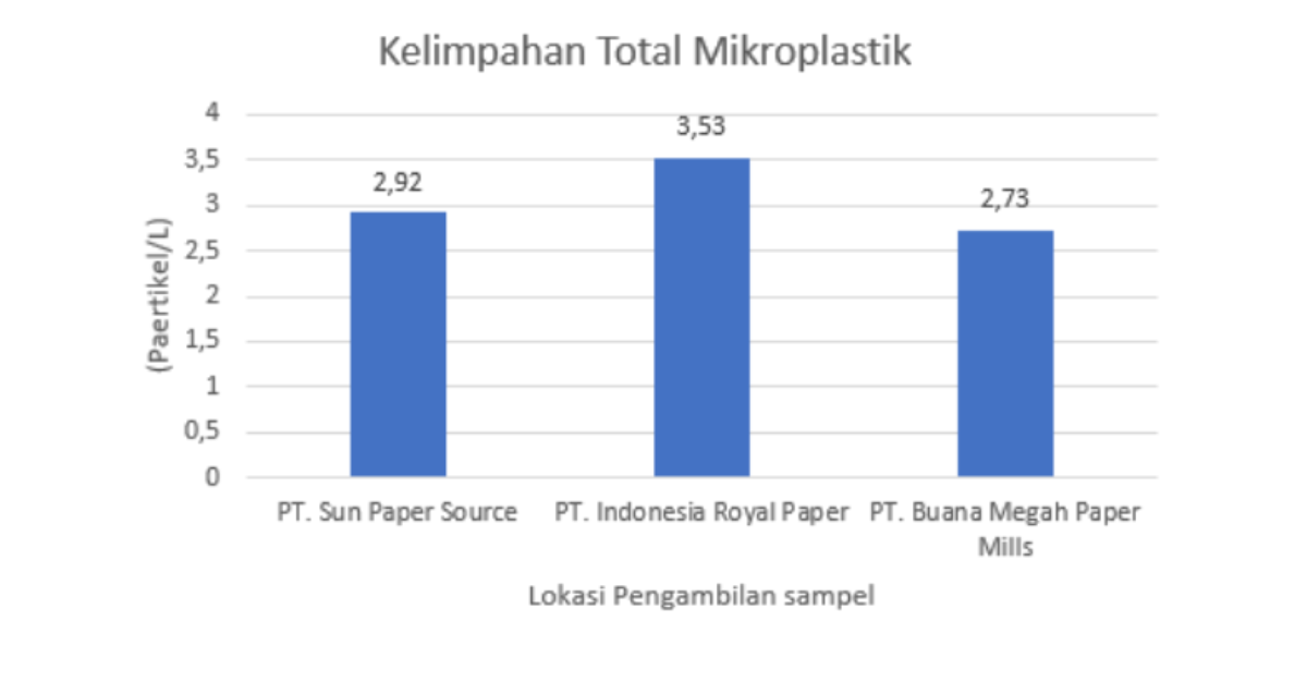 Kelimpahan tertinggi tercatat di PT Indonesia Royal Paper sebesar 3,53 partikel per liter, disusul PT Sun Paper Source sebesar 2,92 partikel per liter, dan PT Buana Megah Paper Mills sebesar 2,73 partikel per liter.